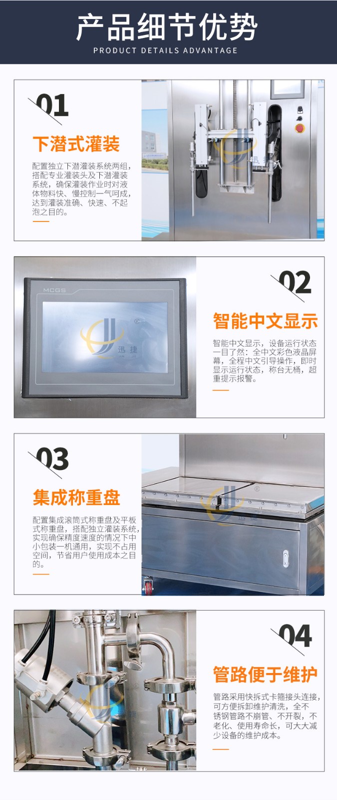 半自動(dòng)液體稱重灌裝機(jī)適用于各種水劑以及高泡類液體的灌裝。如:飲料、醋、醬油、液體化妝品、蛋白液、玻璃水等。