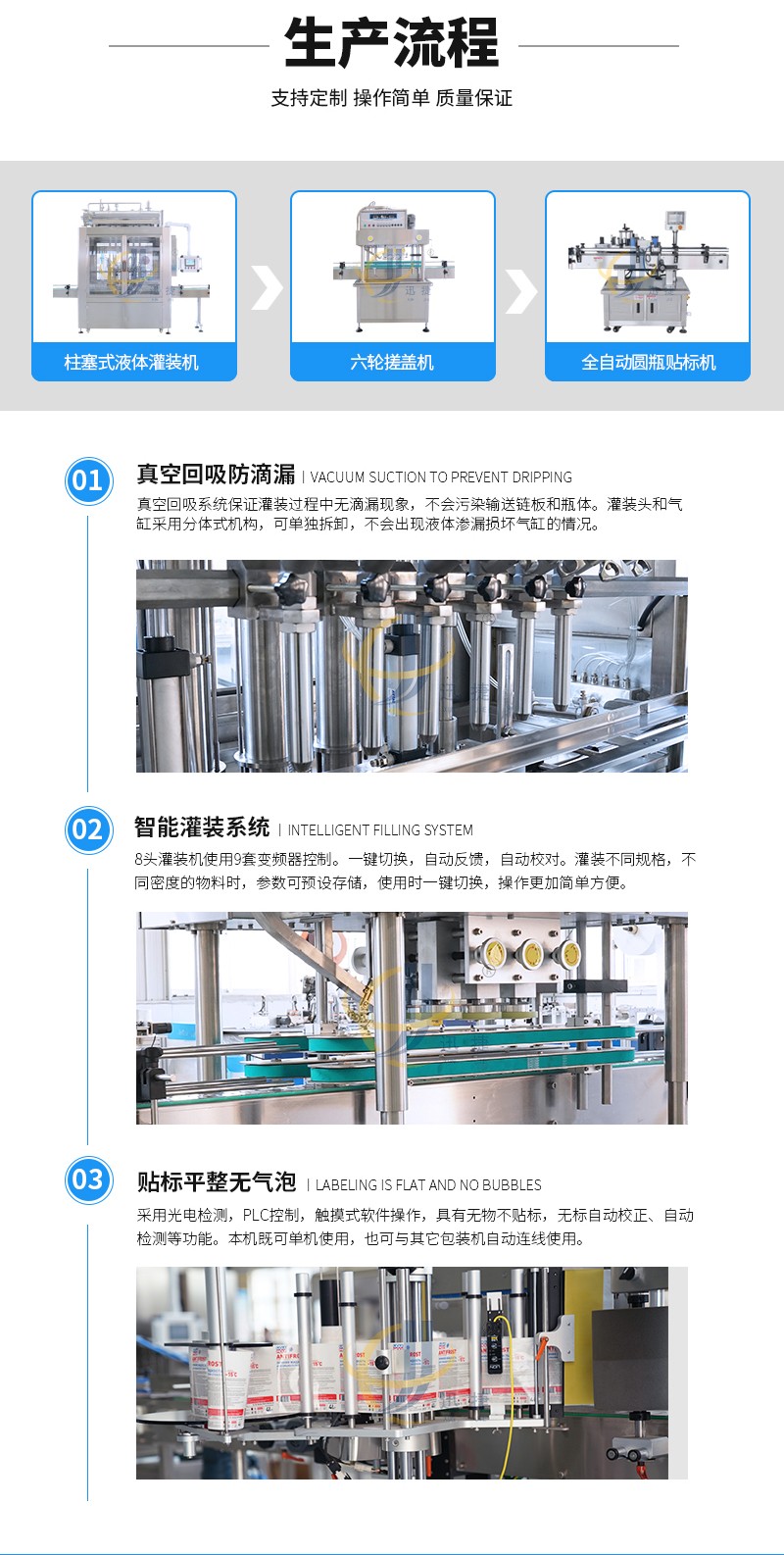 六頭柱塞灌裝生產(chǎn)線適用于燕窩、果醬、枇杷膏、涼茶、燕麥粥等粘流體中帶小顆粒并且可流動的較為粘稠的物料灌裝。