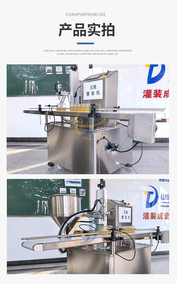 五極灌裝機:極快-單頭2200瓶/時 極簡-操作簡單 極廣-啥啥都能灌 極穩(wěn)-24小時不停機 極準(zhǔn)-200g誤差小于1g。