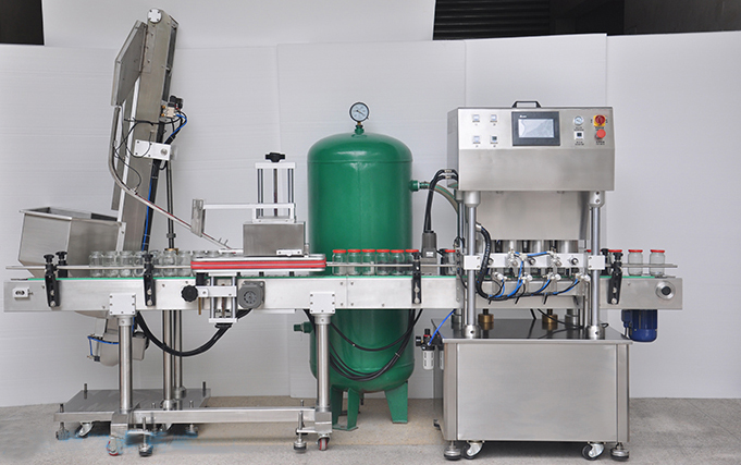 旋蓋部分:機(jī)器采用自動(dòng)下蓋方式,無(wú)需過(guò)多人工參與,自動(dòng)下蓋抽真空旋蓋,整機(jī)灌裝包裝流程一氣呵成。