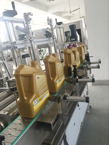 潤滑油灌裝旋蓋一體機為活塞式計量方式。計量范圍為1升-5升,離合式旋蓋結構,確保旋蓋合格率高,不傷蓋。本設備為灌裝旋蓋一體機