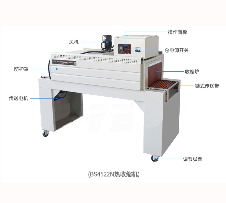 自動(dòng)塑料膜熱收縮包裝機(jī)結(jié)構(gòu)緊湊占地面積小,非常適合配套自動(dòng)包裝流水線完成產(chǎn)品的自動(dòng)無人化包裝,適合于單個(gè)物品包裝或有底托物品包裝。