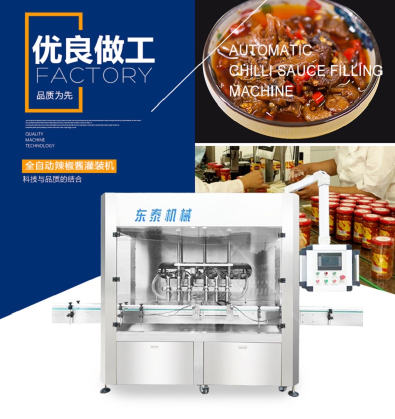 辣椒醬起源于印度尼西亞 選用新鮮辣椒和配料所調制可用做烹調菜、配蝦和其他海鮮或蘸食物,中國關于辣椒的記載是明代高濂撰《遵生八箋》,在明朝末年傳入中國。隨著辣椒醬的傳入,再加上1984年,老干媽的推出,現(xiàn)如今辣椒醬可是人們餐桌上離不開的一道美食了,辣椒醬好吃又美味,但是辣椒醬是如何灌裝的呢?這就要用到我們推出的辣椒醬福利!辣椒醬灌裝機了。