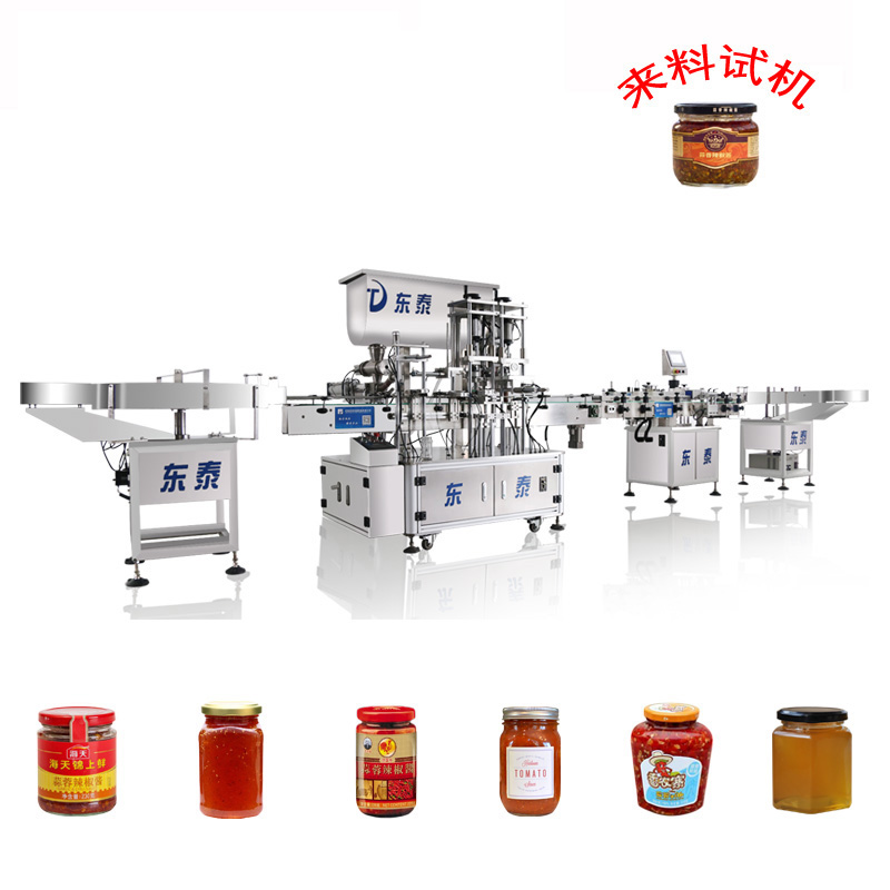 3、該灌裝機(jī)主要針對食品行業(yè)的醬類分裝設(shè)計(jì)生產(chǎn),特別適用于調(diào)味品中帶顆粒并且濃度較大的辣椒醬、豆瓣醬、花生醬、芝麻醬、果醬、牛油火鍋底料、紅油火鍋底料等物質(zhì)的粘稠醬類的灌裝。